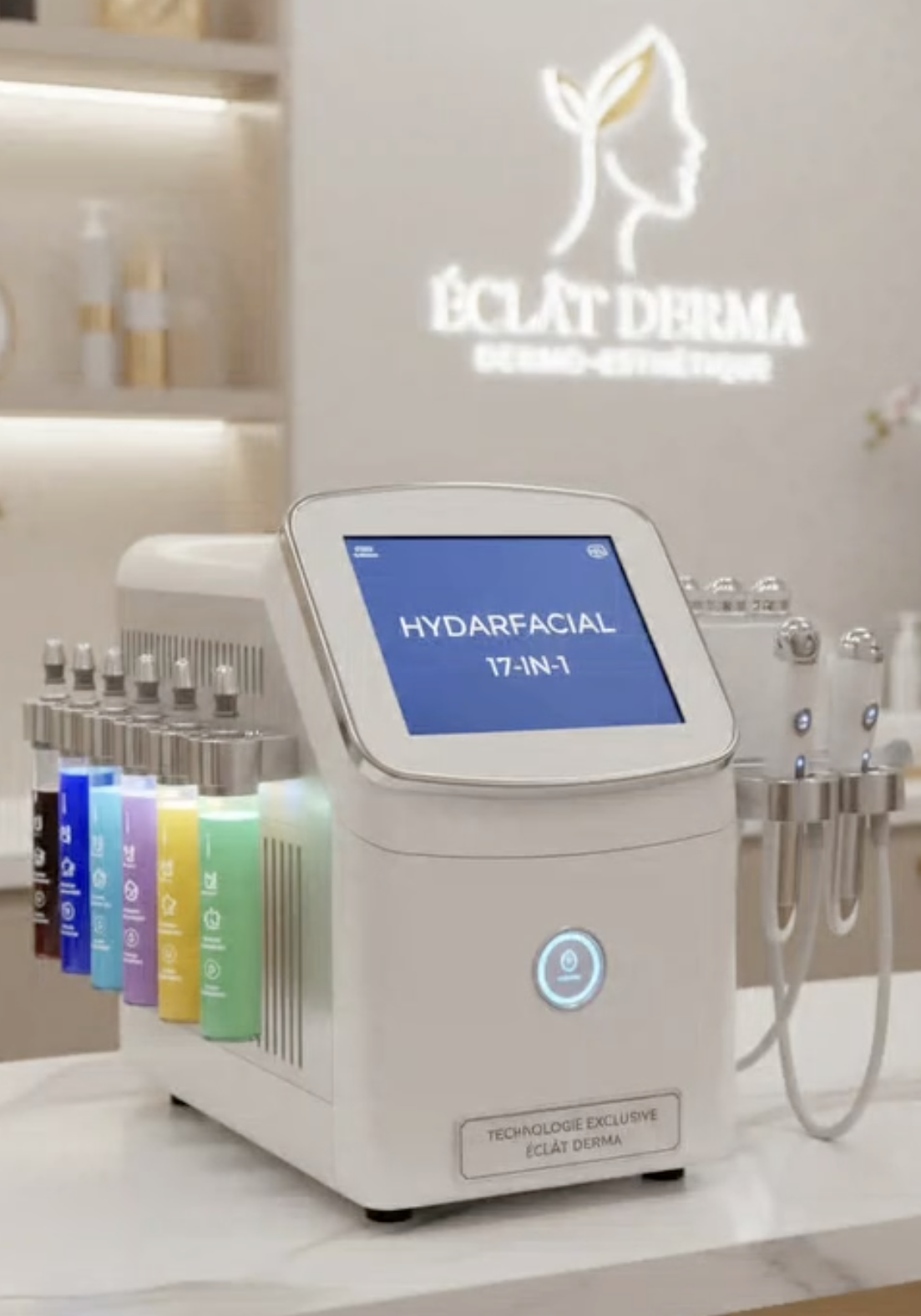 Technologique au service de votre peau. Fini les soins classiques, place à la dermo-esthétique de nouvelle génération. Technologie 17-en-1: l'hydrafacial le plus complet pour nettoyer et purifier sans agresser.